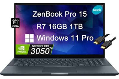 The ASUS ZenBook Pro 15 OLED Laptop is a powerful and sleek mobile device designed for productivity and entertainment. With its AMD Ryzen 9 5900HX CPU and NVIDIA GeForce RTX 3050 Ti GPU, it offers excellent performance for tasks such as gaming and content creation. The 15.6-inch OLED touch display provides vibrant colors and sharp visuals, while the 1TB PCIe SSD and 16GB RAM offer fast storage and multitasking capabilities. Other features include a built-in IR camera for facial recognition, a backlit keyboard, and extensive connectivity options. The laptop comes in a Pine Grey color and weighs 4.41 lbs for easy portability. Overall, it is a high-quality laptop with impressive specs and a stylish design.