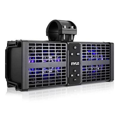 The 11” Powered ATV/UTV Soundbar System by Pyle delivers powerful audio performance for off-road adventures. With its built-in wireless BT streaming, you can easily play and control your favorite music and apps like Spotify and YouTube. The soundbar is designed to withstand harsh weather conditions, featuring IPX6 waterproofing/weatherproofing and a rugged exterior. It also comes with built-in LED lights in red, blue, and purple for added visibility after dark. The high-performance design includes a Class D amplifier and multiple soundbar inputs for versatility. With compact dimensions and easy installation, this soundbar is a must-have for ATV and UTV enthusiasts.