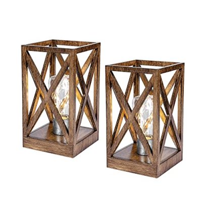 The WINGBO 2 Pack Retro Battery Powered Table Lamps are perfect accent pieces to instantly transform any space with a rustic country vibe. The durable LED bulb provides beautiful warm light and has a long lifetime. Powered by 3 x AA batteries, these lamps are cordless and portable, allowing you to take them anywhere you want. With a classic lantern cage design and a faded brown wood finish, these lamps have a refined retro look. The set includes two lamps in a faded brown color. The WINGBO lamps have received positive customer ratings and reviews, with a 4.5/5 rating. They are perfect for various indoor and outdoor uses and come with a satisfaction guarantee.
