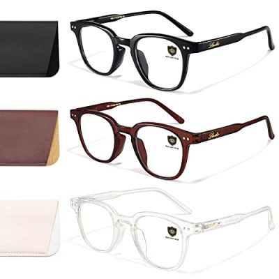 The livho Acetate Blue Light Blocking Glasses are a stylish and fashionable option for both men and women. With their round eyeglass frame, they can be worn in any occasion, adding a touch of trendiness to your outfit. These glasses are designed to protect your eyes from harmful blue light, which can cause eye strain, fatigue, and even affect sleep quality. The livho glasses block 98% of the blue light emitted from computer screens, TVs, phones, and other electronic devices. They are lightweight, durable, and comfortable to wear for long periods of time. The pack includes three pairs of glasses with their respective PU leather cases, making it a practical gift for friends and family. Overall, the livho Acetate Blue Light Blocking Glasses offer great eye protection in a stylish package.