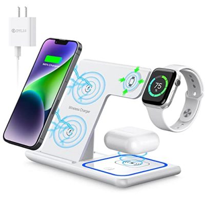 The Wireless Charging Station is a convenient and versatile 3-in-1 charger that allows you to simultaneously charge your iPhone, Apple Watch, and AirPods. With its included 18W QC 3.0 adapter, this wireless charging station provides fast charging speeds of up to 10W for phones, 5W for AirPods 2/Pro, and 3W for Apple Watch. It features a safe charging experience with over-current, over-voltage, and over-charging protection. The charging dock also has heat dissipation holes for better temperature control and durability. Its universal compatibility allows it to work with various phone models and it’s also compatible with Apple Watch and most phones with wireless charging capabilities. The sleep-friendly indicator lights ensure that the charging status doesn’t disturb your sleep. Overall, the Wireless Charging Station offers a convenient and safe way to charge multiple devices at once.