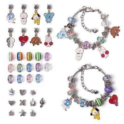 Transform your love for BTS into stylish accessories with the Fatyi Kpop BTS Charm Making Kit. This DIY bracelet making set is perfect for Army fans who want to create their own personalized bracelets or necklaces. The kit includes 2 elastic bracelet chains, 10 charm metal beads, 14 glass beads, and 8 metal pendants featuring BT21 cartoon characters. With this kit, you can easily design and make unique charm bracelets that complement your outfit and reflect your mood. It's a fantastic gift option for birthdays, Christmas, parties, or even BTS graduation celebrations. Customer service is top-notch, and you can explore more KPOP gift sets at the Fatyi Shop.