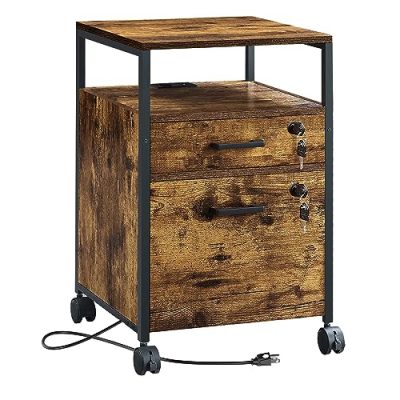 The Unikito Rolling File Cabinet is a stylish and practical addition to any office space. With its sleek black oak design and modern features, this file cabinet not only provides ample storage space for your files and supplies, but also includes power outlets and USB charging ports for your electronic devices. The cabinet is easy to assemble and can be moved around on its locking casters. It is constructed with high-quality materials to ensure durability and stability. The Unikito Rolling File Cabinet is a versatile and functional piece of furniture that will enhance both the organization and aesthetics of your workspace.
