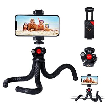 The Ubeesize Phone Tripod is a portable and flexible tripod designed for video recording. It features compact and flexible legs that can wrap around bicycles, poles, and branches. With its durable metal construction and non-skid rubber feet, it offers superior stability. The tripod allows for both portrait and landscape modes and comes with a wireless remote for convenient control up to 30 feet away. It also includes a universal phone holder and is compatible with digital cameras. With its compact size and functional accessories, this tripod is great for traveling, selfies, and video recording.