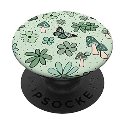Enhance the look of your phone with the Green Flowers Butterflies & Mushrooms Cottagecore Aesthetic PopSockets Swappable PopGrip. This adorable accessory features a pale green floral pattern with daisies, flowers, butterflies, and mushrooms, giving your phone a gorgeous retro forest feel with a vintage aesthetic. The PopGrip is designed to be swappable, allowing you to switch out the top for another design or remove it completely for wireless charging. It also serves as an expandable stand, making it convenient for watching videos, taking group photos, and video calls. The advanced adhesive ensures easy removal and repositioning on most devices and cases. Please note that it may not stick to silicone, waterproof, or highly textured cases. Overall, this PopSocket offers a stylish and functional addition to your smartphone.