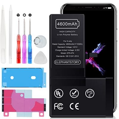 The ElephantStory iPhone X Battery Replacement Kit is a high-quality replacement battery that is compatible with iPhone X models A1865, A1901, and A1902. With a capacity of 4600mAh, this battery provides longer battery life than the original battery. It is built with Grade A rated battery cells and has UL, FCC, CE, and ROHS certifications, ensuring both user and device safety. The kit includes a full set of repair tools and a detailed user manual for easy installation. The battery's performance and longevity can be optimized after 3 to 5 complete charge and discharge cycles. Additionally, ElephantStory offers a worry-free warranty and responsive customer support. Overall, this battery replacement kit is a cost-effective solution to bring your iPhone X battery back to its full glory.