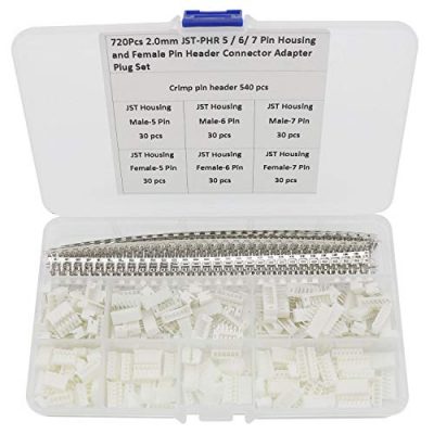 The JST PH 2.0 Connector Kit is a high-quality 720-piece assortment of JST connectors. It features 5/6/7 pin plug housing crimp terminal connectors with a pitch of 2.0mm. Made from PVC and metal, these connectors come in white and silver colors. They are widely used for speakers, monitors, computers, electronic toys, copiers, fax machines, batteries, and circuit boards. Customers have praised the set for being perfect, good quality, and offering great value for the price. However, some have mentioned that there could be more connector pins included. Overall, the JST PH 2.0 Connector Kit is a reliable option for various electronic connections.