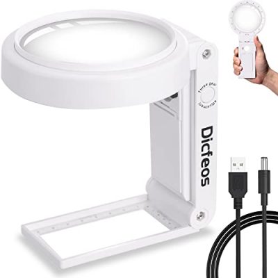 The Dicfeos 30X 40X Magnifying Glass with Light and Stand is a versatile and powerful magnifying glass that offers clear vision when reading small prints or details. It features a folding design that allows it to be used as both a portable magnifying glass and a stand magnifying glass. Powered by either battery or USB, it provides bright LED lights for extra illumination in dark spaces. With a 30X magnification and no distortion, this magnifying glass is perfect for seniors, hobbyists, and anyone who needs assistance with close work. The Dicfeos magnifying glass is lightweight and easy to hold, with an ergonomic design and a comfortable grip. Although the stand could be more stable and the folding mechanism feels a bit flimsy, this magnifying glass delivers on its promises and is highly recommended for its convenience, brightness, and portability.
