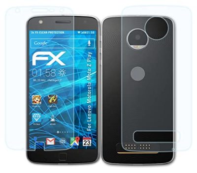 The atFoliX Screen Protection Film is a set of three ultra-clear and hard-coated protector films designed specifically for the Lenovo Motorola Moto Z Play. These films are made in Germany and provide long-lasting mechanical protection for the screen against scratches and damage. The film is easy to apply with 100% bubble-free adhesion and is almost invisible on the display. It comes with front and back films and is compatible with the device's curved display. The film has a pencil hardness of 6H, making it highly resistant to scratches. Overall, it offers robust protection for the Lenovo Motorola Moto Z Play.