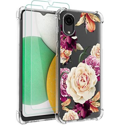 The Osophter for Galaxy A03 Core Case with 2pcs Screen Protector is a stylish and protective phone cover designed specifically for Samsung Galaxy A03 Core. Made of premium TPU and Polycarbonate material, it provides excellent shock absorption and protects against daily wear and tear. The case comes in five different texture colors, including Purple Flower, Red Flower, Sun Flower, Big Rose Flower, and White Lace. It also includes two screen protectors for added safeguarding. Please note that the actual case may look slightly different from the photo due to lighting and display differences. Overall, this case offers reliable protection and a trendy floral design for girls and women.