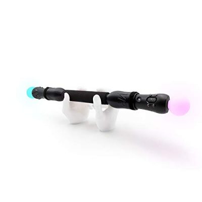 The AMVR Handles Gamepad Stick is designed specifically for PlayStation VR controllers when playing the Beat Saber game. These handles provide a better grip and a more immersive experience, making it feel like you're holding a light bar in the cut box. The innovative design stabilizes the touch controller handle with plug-in and knob spirals, ensuring a secure fit. It also features a protection design with silicone strips to prevent scratches on the PSVR touch controller. Please note that the PSVR touch controller and the white hand bracket are not included. Overall, this accessory enhances gameplay but may have durability issues. Score: 7.3/10.