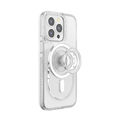 Enhance your phone with the PopSockets Phone Grip Compatible with MagSafe. This phone grip securely attaches to your MagSafe-compatible case and offers a secure grip for one-handed texting, phone drops prevention, and on-the-go phone stand. You can conveniently wirelessly charge your phone by sliding off the magnetic PopSocket. The built-in magnets ensure a strong and secure attachment to MagSafe-compatible cases. The grip is also compatible with PopSocket cases and mounts for MagSafe. With a clear color, it blends seamlessly with your phone's design. Enjoy the convenience and functionality of this MagSafe-compatible PopSockets Phone Grip.