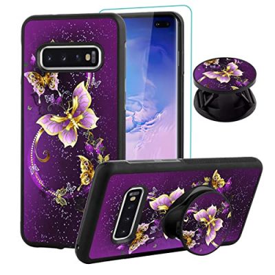 The SAKUULO Samsung Galaxy S10 Plus Case offers heavy-duty protection for your phone while adding a touch of style with its unique Purple Butterfly design. The case features a screen protector for full protection against drops, dust, shocks, and fingerprints. It also includes a kickstand for convenient hands-free viewing. The tire texture non-slip design ensures a secure grip and protects your phone from unexpected impacts, dust, and scratches. The case is easy to access all buttons and ports, and the raised back edges keep the screen and camera safe from potential scratches. It is compatible with wireless charging, making it a practical choice. The case is printed using advanced technology for long-lasting and fade-resistant designs. Overall, this case provides both style and protection for your Samsung Galaxy S10 Plus.