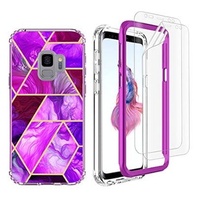 The Jeylly Samsung Galaxy S9 Case is a full body protective bumper cover that offers 360-degree rugged protection for your Galaxy S9. It features a dual-layer design with a soft TPU impact-resistant bumper and a hard PC front frame to protect your phone from scratches and accidental drops. The case is compatible with wireless charging, and its precise cutouts allow easy access to all ports and buttons. With a stylish marble design, this case is specially designed for women and girls. It also includes two packs of soft screen protectors for extra protection. Overall, the Jeylly Samsung Galaxy S9 Case is a durable and fashionable option for keeping your phone safe.