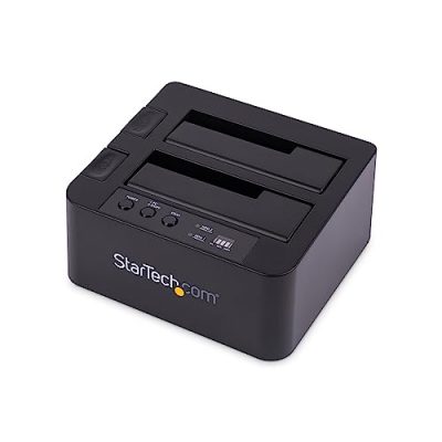 The StarTech.com Standalone Hard Drive Duplicator is a versatile external dual bay HDD/SSD cloner/copier. It allows for standalone drive cloning of 2.5/3.5" SATA drives with no computer required. The docking station can also be used as a USB to SATA adapter for quick access to SATA drives over USB. With a sector-by-sector copier, it works with any file format and copies the entire drive, including empty sectors, at speeds up to 28 GB/min. This hard drive duplicator is designed and built for IT professionals and comes with a 2-year warranty and free lifetime technical assistance. It is the go-to choice for those in need of reliable, efficient, and easy-to-use drive cloning and recovery.