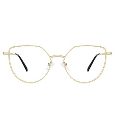 The TIJN Irregular Cateye Blue Light Blocking Glasses are designed to relieve eye fatigue caused by mobile phone and computer usage. The lenses have a yellow tint that blocks harmful blue-ray light, offering protection and reducing eyestrain. With a lustrous metallic cat-eye shape and a lightweight metal frame, these glasses combine style and comfort. The sturdy construction ensures durability, and the upgraded hinge adds stability. The medium-sized gold frames are both elegant and fashionable. While some users have experienced glare and find the yellow lenses to be too obvious, others appreciate the effectiveness of the blue light blocking and the stylish design. Overall, these glasses provide an effective solution for reducing eye strain caused by blue light exposure.