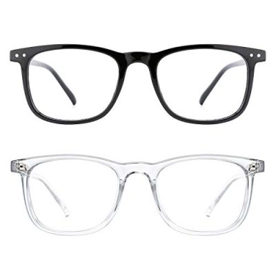 The TIJN Blue Light Glasses 2 Pack is a set of square, lightweight computer screen glasses designed to reduce eyestrain and block blue light. These glasses are suitable for both men and women, and are made from durable polycarbonate material. They feature a classic square frame design with a trendy double rivet detail. With their upgraded anti blu-ray technology, these glasses provide a comfortable visual shield and alleviate visual fatigue from prolonged screen time. The TIJN Blue Light Glasses 2 Pack is available in a black and transparent color combination and comes with a medium-sized frame. They are highly rated by customers for their effectiveness in reducing eye strain and their stylish appearance.