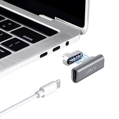 The iSkey Magnetic USB C Adapter is a top-notch accessory that offers faster and safer charging, data transfer, and video output. With its strong magnetic connection, 20 gold plated pins, aluminum housing, and LED indicator, it ensures a reliable and convenient experience. This adapter is compatible with MacBook Pro/Air, 2019 iPad Pro, Dell XPS, and more Type C laptops and phones. It supports USB PD 100W quick charge, 10Gb/s data transfer, and 4K@60Hz video output. The gold plating craft ensures steady data transmission. The package includes 1 Magnetic USB C Adapter and 1 Small Tool, along with a 12-month warranty and friendly customer service. However, it's important to note that cables are not included with the magnetic adapter.