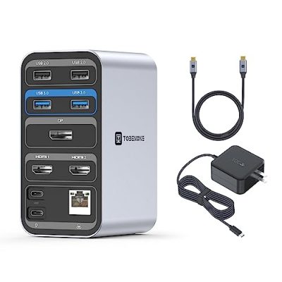 The TOBENONE Laptop Docking Station is a reliable and efficient solution for connecting multiple peripherals to your Windows laptop. It offers a wide range of ports, including support for dual monitors, and comes with a 100W power adapter for stable charging. The plug-and-play functionality makes it easy to set up and use, while the compact design helps keep your workspace tidy. However, it’s important to note that this docking station is not compatible with macOS. Overall, if you’re looking for a versatile and user-friendly docking station, the TOBENONE Laptop Docking Station is a great choice.