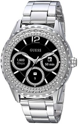 The GUESS Connect Wear OS Smartwatch with Silver-Tone Bracelet Crystal Accents is a stylish and fashionable accessory that combines functionality with elegance. With its digital touch movement, this smartwatch is compatible with both iPhone and Android devices, making it versatile for all users. The stainless steel bracelet and crystal accents add a touch of sophistication to any outfit. The watch comes with a 1-year limited manufacturer warranty, ensuring its durability. Although it is not water-resistant, the AMOLED display with a resolution of 390 x 390 pixels provides clear visuals. The GUESS Connect Smartwatch has received a customer rating of 4.1 out of 5 and is praised for its easy setup, intuitive interface, and fashionable design. However, some users have reported issues with the charger and compatibility with certain phone features.