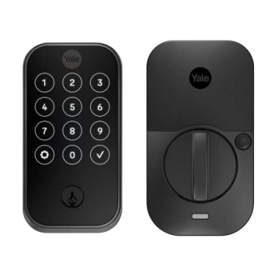 The Yale Assure Lock with Z-Wave is a smart touchscreen deadbolt that allows you to unlock your door without keys by entering a code on the backlit keypad. It can also be locked behind you automatically. With the ability to be added to a compatible Z-Wave smart home or alarm system and app, you can lock and unlock your door from anywhere. The lock replaces your existing deadbolt in minutes and comes with two physical keys for added peace of mind. Works with Alexa via a compatible hub, and the features may vary based on the Z-Wave controller. The Yale Assure Lock with Z-Wave is available in Black Suede.