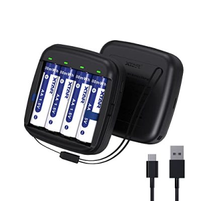 The Rechargeable AA Batteries with Charger by XTAR is a high-quality, versatile power solution for mobile devices. With superior compatibility, this charger can recharge various battery types, including 1.5V Li-ion/IMR/INR/ICR and 1.2V Ni-MH AA/AAA batteries. The charger also functions as a portable power source, allowing you to power external devices by inserting four batteries with power and turning on the USB output. The 1.5V AA rechargeable batteries have a high capacity of 3300mWh, ensuring long-lasting energy. Thanks to the low self-discharge technology, these Lithium batteries hold 80% power even after many years. Safety is a top priority, as the batteries have undergone multiple tests. The package includes 4xAA batteries, 1x BC4 Charger, 1x Battery Case, 1x Lanyard, 1x Type-C Cable, and 1x Manual.