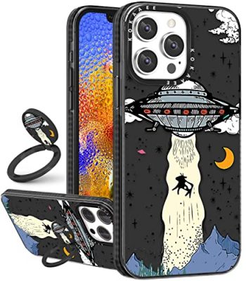 The Kokaaee 2in1 for iPhone 14 Pro Max Case is a cute and stylish phone case designed for women and girls. Made with high-quality soft TPU, it provides protection against accidental drops and bumps. The raised camera and screen edges offer additional protection for the touch screen and camera lens. The clear and slim design allows you to showcase the original color of your phone while adding a unique fashion touch with the UFO Alien Party Theme Universe design. The case comes with a rotatable ring holder that offers multiple angles for watching videos and movies. It is easy to install and clean, and supports wireless charging. This adorable phone case is also a great gift idea for family and friends.