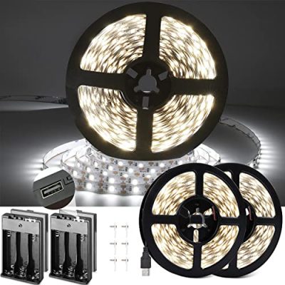 The 2 Pack Warm White LED Strip Lights are versatile and portable battery-powered lights that can be used for various purposes. Whether you want to create a cozy ambiance in your bedroom, accentuate your kitchen cabinets, or decorate for Christmas, these strip lights are a convenient choice. With self-adhesive backing, they are easy to install and can be attached to any clean surface. The lights can be powered by 3 AA batteries and come with a remote control for easy operation. The LED strip lights are dimmable and offer 8 different lighting modes to suit your preferences. They are also waterproof, making them suitable for both indoor and outdoor use. Overall, these lights provide a flexible and portable lighting solution for various settings.