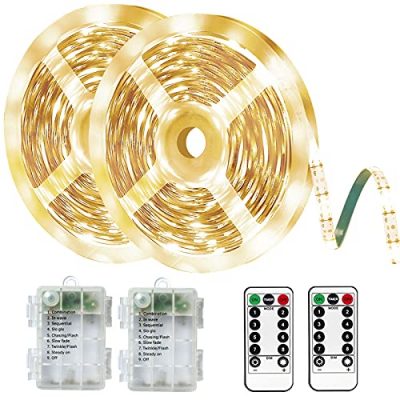 Create a romantic and relaxing atmosphere with echosari Battery Powered Led Strip Lights. These warm white strip lights are perfect for TV, computer, kitchen, cupboards, cabinet, shelves, and bedroom decoration. With 8 different modes and adjustable brightness, they can be used as a nightlight and provide a cozy ambiance. The strip lights have a timer function for added convenience, automatically turning on and off according to your settings. The self-adhesive and cuttable design makes installation a breeze, allowing you to easily customize the length and stick them to any dry, clean, and flat surface. Waterproof and battery operated, these LED strip lights offer flexibility and versatility in your decor.