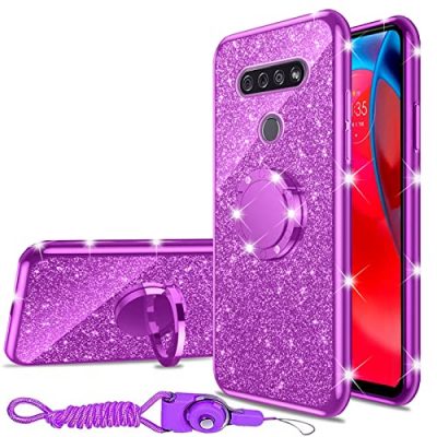 The nancheng for LG K51 Phone Case is a stylish and protective case designed for LG K51, LG Q51, and LG Reflect. It features a luxuriously shiny design with sparkles that stay smudge-free. The case also includes a neck lanyard as a gift. With its slim fit, it provides reliable protection against scratches, bumps, and dings. The soft TPU bumper adds an extra layer of protection. The case has precision cutouts for easy access to all ports and buttons. It also comes with a built-in metal plate, allowing you to use it with a magnetic car mount. The case is available in a glitter purple color.