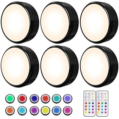 - Package includes 6 LED Puck Lights, adhesive pads, and 2 remote controls