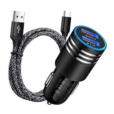 The Cell Phone Car Charger for Samsung is a fast car charger kit that is compatible with a wide range of Samsung Galaxy models, as well as other USB C devices. It features a next-generation Type-C connector with a 3ft USB c cord, allowing for fast charging. The charger also includes an additional standard USB A port for charging non-USBC devices. With a total output of 3.4A, it can provide a faster-charging speed than normal auto lighter chargers. The package includes 1 USB car charger with a 3ft type-c cord and comes with a 12-month hassle-free warranty. Please note that the charger may not fit all phone models.