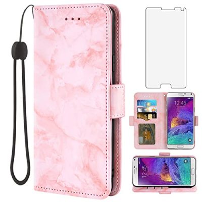 The Asuwish Compatible with Samsung Galaxy Note 4 Case and Tempered Glass Screen Protector is a stylish and functional phone case designed specifically for the Samsung Galaxy Note 4. The case features a beautiful irregular marble pattern and is made of soft silicone TPU and PU leather, providing both style and protection for your device. It comes with a tempered glass screen protector for additional protection. The wallet phone case has three card holders and a side pocket for money, allowing you to conveniently carry your essentials with you. It also has a kickstand function, perfect for video calls, reading, and watching movies. The magnetic closure securely keeps the case closed and provides easy access to all ports and features. If you are not satisfied with the product, the customer service offers various solutions. Available in a pink color.