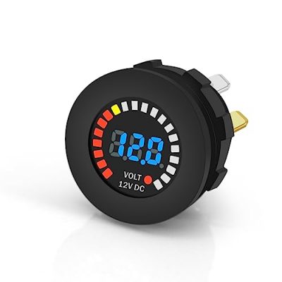 The 12V DC Voltmeter Color LED Digital Display is a waterproof voltmeter that allows you to measure the voltage of your battery accurately. It has a measuring range of 5-15V and features a color LED display with three different colored lights indicating different voltage levels. The twist-and-lock design makes it easy to install, and it can be directly replaced on the control panel. This voltmeter is made of high-grade flame retardant materials and is IP65 waterproof, ensuring its safety and durability. It is suitable for use in various vehicles such as cars, boats, ATVs, and caravans. With its reverse connection protection, it won't burn out even if the wires are reversely connected. Overall, it is a convenient and reliable accessory for monitoring battery voltage.
