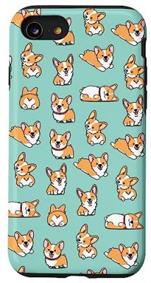 The iPhone SE (2020) / 7 / 8 Corgi Case is a delightful phone case featuring a teal kawaii corgi design with cute corgi butts. It makes a perfect gift for welsh pembroke corgi parents or anyone who loves corgis. This two-part protective case is crafted from a premium scratch-resistant polycarbonate shell and shock absorbent TPU liner, providing reliable protection against accidental drops. It is easy to install and proudly printed in the USA. Add a corgi pop socket to complete the adorable look!