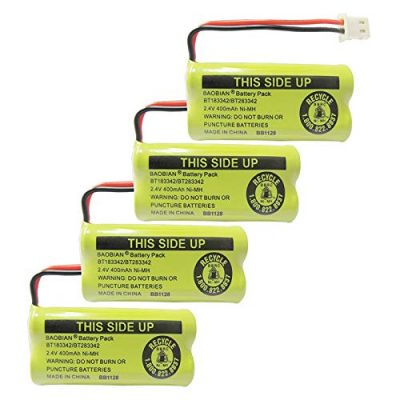 The BAOBIAN 2.4V 400mAh Cordless Home Phone Battery is a reliable replacement battery pack compatible with various AT&T and VTech telephone models. With a 2.4V 400mAh Ni-MH type, this battery pack offers over-voltage, over-current, over-charge, and short-circuit protection. Its best wire length ensures convenient installation in tight spaces. With compatibility for numerous telephone models, this battery pack is versatile and convenient for home phone users. The pack includes four BT183342/BT283342 batteries. Customers have rated this product 4.6 out of 5.