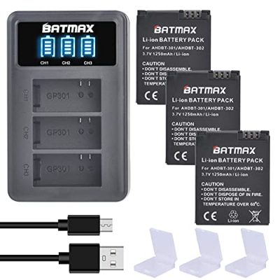 The Batmax 3Pcs AHDBT-301 Li-ion Battery + 3-Slots LED USB Charger is a solid choice to power up your GoPro Hero 3 and Hero 3+ cameras. The package includes three rechargeable batteries and a convenient LED USB charger. While the batteries may not have the exact advertised capacity, they still provide decent performance. The charger’s LED displays and protective features ensure safe and reliable charging. Considering the affordable price and the added convenience of the charger, this package offers good value for money. Overall, the Batmax battery and charger combo is a reliable and practical solution for extending your GoPro camera usage.