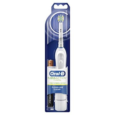 The Oral-B Clinical Floss Action electric toothbrush provides a floss-like clean for healthier gums. It features floss action bristles that loosen plaque between teeth, and it is compatible with various Oral-B brush heads. The battery-operated toothbrush offers consistent performance and comes with 2 AA batteries. This toothbrush is from Oral-B, the #1 dentist-recommended toothbrush brand worldwide. The brush is white in color and has dimensions of 2.17Lx1.50Wx9.45H. Overall, it is a budget-friendly toothbrush that effectively cleans teeth and gums.