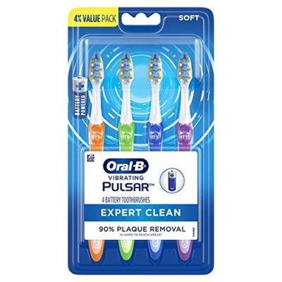 The Oral-B Pulsar Expert Clean Battery Powered Toothbrush is a top choice for maintaining oral hygiene. With its pulsating bristles, it effectively reaches deep between teeth to sweep away food and plaque. The toothbrush adjusts to the contours of your teeth, ensuring a thorough clean. The vibrating bristles not only clean but also polish and massage your teeth for a refreshing brushing experience. As the #1 dentist-recommended toothbrush brand worldwide, Oral-B guarantees superior quality and performance. The 4-count pack is convenient for families, but some customers had concerns about the brushes not being color-coded. Overall, the Oral-B Pulsar Expert Clean Toothbrush offers excellent value for its efficiency and affordability.