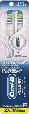 The Oral-B Pulsar Gum-Care Battery Powered Toothbrush is designed to promote healthier, firmer gums. Its vibrating bristles gently massage and stimulate your gums, while also reducing gingivitis and improving gum health. The micro-pulse bristles pivot and pulse to penetrate deep between teeth, providing a superior clean compared to a regular manual brush. This battery-operated toothbrush comes with a battery included, making it convenient for immediate use. Oral-B is the number one dentist-recommended toothbrush brand worldwide. With its soft bristles and effective cleaning power, this toothbrush is a great option for maintaining optimal oral hygiene.