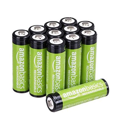 The Amazon Basics Rechargeable AA NiMH High-Capacity Batteries are reliable and long-lasting batteries. With a pack of 12, these batteries have a capacity of 2400mAh and can be recharged up to 400 times. They are ideal for devices with high power or continuous drain like game controllers, wireless devices, and toys. These batteries have a low self-discharge rate and maintain 50% capacity for up to 1 year. They have a shelf-life of up to 5 years and arrive pre-charged and ready to use. The batteries are green in color and have dimensions of 9.00Lx6.00Wx0.95H. Customers have rated them 4.5/5.