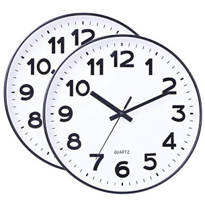 The Foraineam 2 Pieces 12-Inch Wall Clock is a stylish and functional addition to any home, office, or school. With its silent non-ticking quartz movement, it provides an accurate time display without any annoying ticking sounds. The elegant design features a 12-inch diameter, sturdy black frame, and clear glass lens. The large black Arabic numbers against the white dial make it easy to read and create a clear view. Installation is a breeze with the nail slot, allowing you to hang the clock on any nail, screw, or small wall hook. Powered by a single AA battery, this clock is recommended to use an ordinary Carbon Zinc battery for optimal performance. Overall, the Foraineam 2 Pieces 12-Inch Wall Clock combines functionality, style, and ease of use.