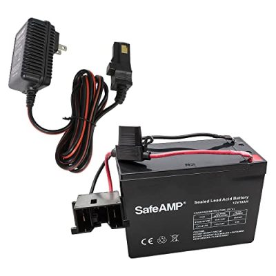 Upgrade your Power Wheels vehicle with the SafeAMP Replacement Battery and 12-Volt Charger Combo Pack. This combo pack includes a 12V 9.5AH SLA battery that is 100% compatible with all Power Wheels 12-Volt vehicles. It has the same specifications as the original Fisher-Price battery, ensuring a perfect fit. The battery comes with a connector that has a replaceable 30 AMP fuse, offering added protection. The UL Listed charger allows for safe and reliable charging. With great compatibility and long-lasting use time, this replacement battery will power your child's adventures on their Power Wheels vehicle. It offers a cost-effective solution compared to buying a new vehicle.