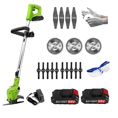 The Electric Weed Whacker is a reliable and versatile cordless trimmer that offers excellent power and convenience for tackling your weeding and trimming needs. With adjustable handle and cutting angle, it ensures a comfortable and controlled operation. The three types of blades provide flexibility to tackle different types of vegetation. The powerful motor and high-speed performance make quick work of weeds and other unwanted growth. While it may require frequent blade changes and the battery life may be limited for larger tasks, overall, this weed eater is a great value package with all the necessary accessories included. Whether you need to trim shrubs, vines, saplings, or weeds, this electric weed eater is up to the task!