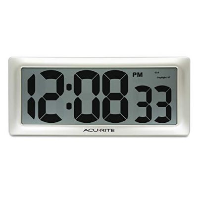 The AcuRite 13.5” Large Digital Indoor Wall Clock with Intelli-Time Technology is a reliable and easy-to-read wall clock that offers hassle-free time adjustment. Its bold and clear digits make it convenient to view the time from afar, while its solid construction and champagne color add a touch of elegance to any space. The clock’s ability to function without a power cord and its automatic adjustment for daylight saving time make it even more convenient. However, some customers reported issues with accuracy and battery drain. Overall, it is a great choice for those in need of a practical and stylish wall clock.