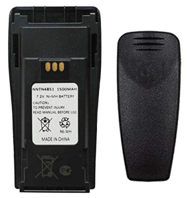 The NNTN4851 1600mAh Ni-MH Battery is a replacement battery for Motorola CP200 CP200D PR400 EP450 EP450S DEP450 CP140 CP160 CP180 CP250 GP3688 GP3188 radios. With a capacity of 1600mAh, this rechargeable battery is designed to replace your original batteries and ensure safety. It offers over-charge, over-discharge, over-heat, over-current, and short-circuit protection. The battery is 100% new, factory packed, and has never been used. Its compact dimension of 4.76Lx2.28Wx0.79H makes it convenient to use. Customers have praised this battery for its great replacement capabilities and compatibility. However, some have experienced issues with the belt clip and compatibility with certain chargers.