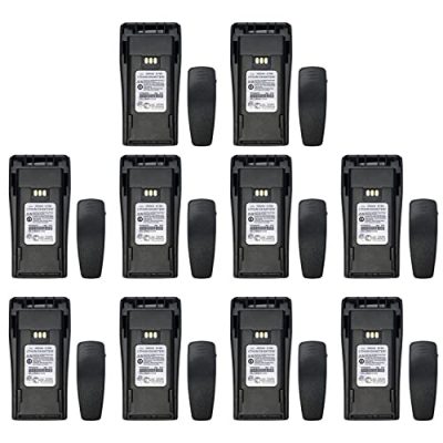 The NNTN4497DR NNTN4497CR Replacement Battery is a high-quality and upgraded battery for various Motorola walkie talkie models. It comes in a package of 10 batteries and includes a belt clip for each battery. With compatibility to CP Series and other models like P450, EP450S, and DEP, this battery is versatile and suitable for various devices. The battery is manufactured with premium grade A++ battery cells and high-quality materials, ensuring durability, safety, and reliability. It has a built-in microchip to prevent common issues like over-charging, over-discharging, short-circuiting, and over-heating. The battery is designed to last over 800+ charge cycles. In case of any issues, the customer service is prompt and offers a satisfactory resolution. It is recommended to fully charge and discharge the battery for better performance. Overall, the NNTN4497DR NNTN4497CR Replacement Battery is a reliable and convenient option for those needing extra batteries for their Motorola devices.