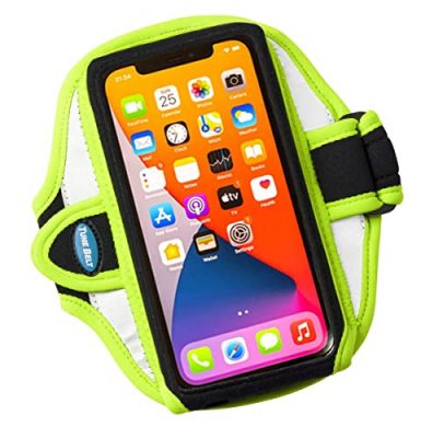 The Tune Belt AB91RY Cell Phone Running Armband Holder Case is a comfortable and secure armband that fits Apple iPhone 14/14 Pro, 13/13 Pro, 11, 11 Pro Max, and Samsung Galaxy S22. Made with soft and stretchy neoprene, it stays secure and easily adjustable without bouncing or slipping during workouts. The armband provides touchscreen control, water resistance, and increased visibility with its bright day glow yellow color and ultra-reflective side panels. It is also designed to wick away moisture and protect the phone from perspiration and the elements. With nearly 40 years of experience, Tune Belt is a reliable brand known for superior quality and excellent customer support. Overall, the Tune Belt AB91RY Cell Phone Running Armband Holder Case is a comfortable and reliable armband that ensures your phone stays secure during workouts.