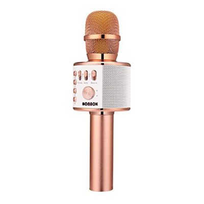 The BONAOK Wireless Bluetooth Karaoke Microphone is a 3-in-1 portable handheld mic speaker that is suitable for all smartphones. It has a particular design that provides comfort during use and can also function as a wireless speaker, mp3 player, and recorder. This karaoke microphone offers two ways of connection – Bluetooth and cable connection, allowing you to easily connect it to your phone and singing app. With high compatibility and the ability to support a micro SD card, you can enjoy singing anytime and anywhere. It features multi-function buttons to easily switch between modes, adjust microphone, echo, and music volume, and enjoy a surrounding immersion with the echo mode. The microphone is suitable for kids and adults, making it a great gift idea for various occasions and festivals. With a rating of 4.4/5 based on customer reviews, this karaoke microphone offers fun and features for singing enthusiasts of all ages.