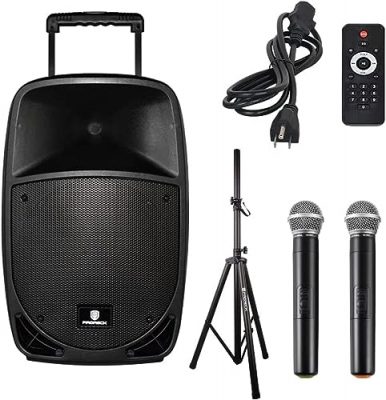 The PRORECK Freedom 12 Portable Wireless Speaker System is a powerful and versatile option for DJs, PA systems, and karaoke setups. With its 12-inch 500-watt speakers, Bluetooth and USB drive connectivity, and built-in wireless microphones, it offers a wide range of features to enhance your audio experience. The system also includes an equalizer for customized sound, remote control for easy operation, and a built-in rechargeable battery for outdoor use. With its portable design and integrated handle and wheels, it is easy to transport and set up wherever you need it. Overall, this speaker system provides excellent sound quality and functionality at an affordable price point. Score: 8.5/10